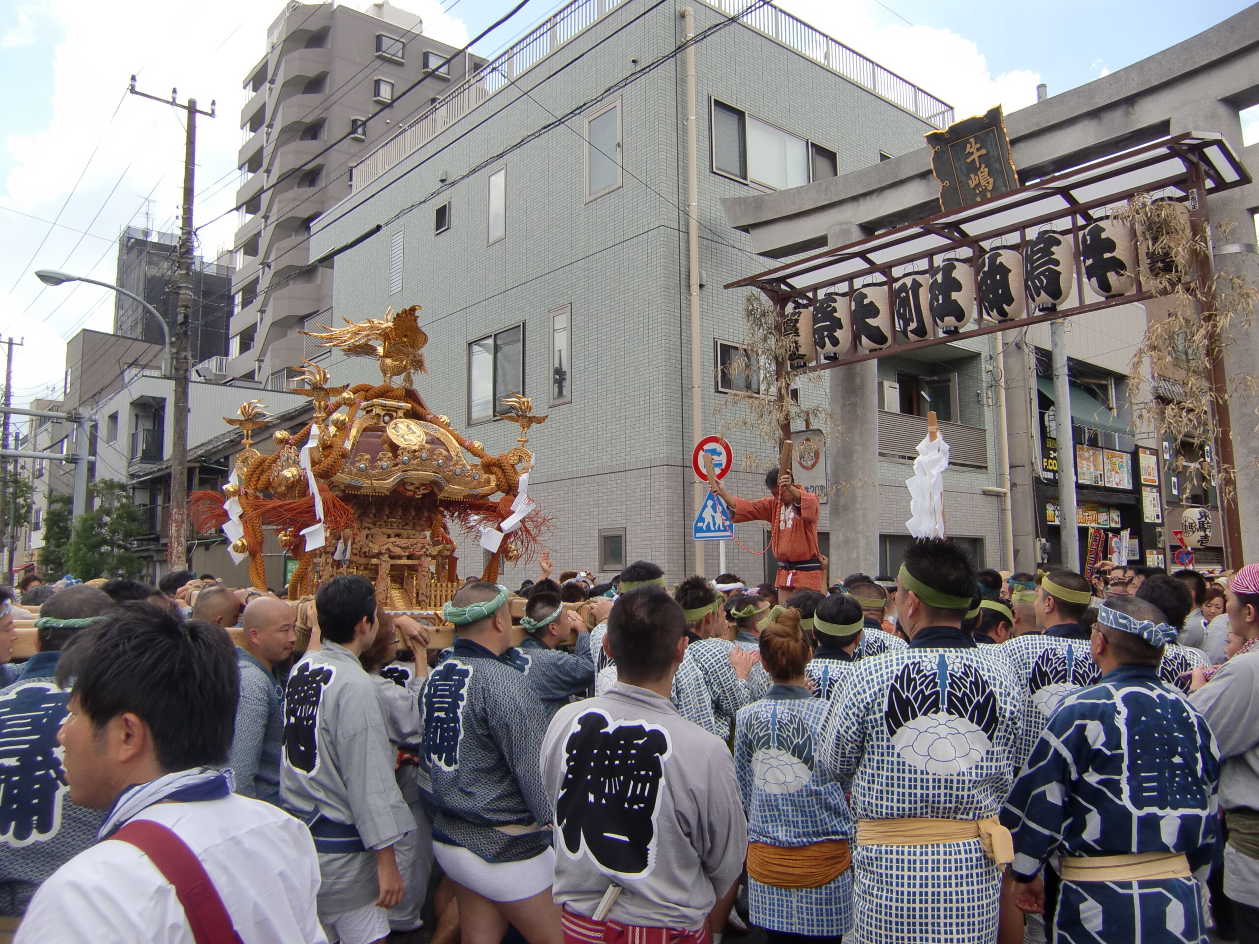 私たちくぎく連が活動する東駒形一丁目は、牛嶋神社の氏子区域となっています。 祭礼は毎年行われていますが、中でも5年に一度の大祭では総数にして50基近い神輿が 氏子エリアを練り歩き、牛嶋神社へ向かいます。 その迫力と盛り上がりは圧巻で、お囃子を担当している私たちくぎく連も心が躍ります。